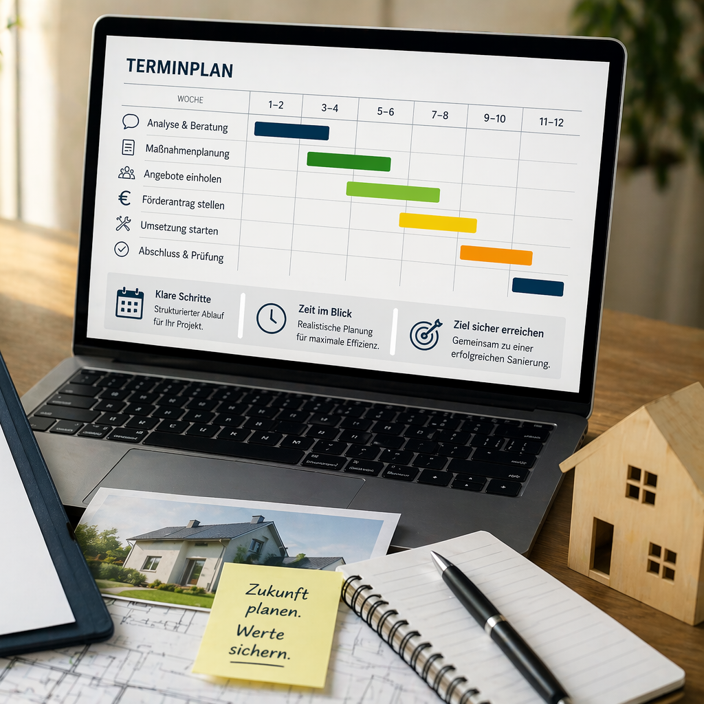 Sie erhalten eine strukturierte Empfehlung zu sinnvollen Maßnahmen, Budgetrahmen und realistischer Umsetzungsdauer – als belastbare Entscheidungsgrundlage für Ihr Projekt.